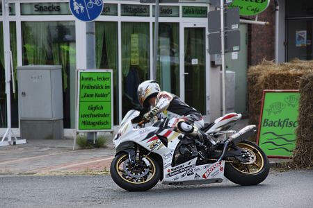 LAUT. ROH. ECHT. So charakterisiert der Veranstalter das Fischereihafen-Rennen. Recht hat er. Schon seit 1952 gibt es das kultige Rennen in der heutigen Form. Auf 2,7 Kilometern „Rennstrecke“ mitten im Hafen rasen zu Pfingsten über 400 Fahrer aus 14 Nationen in 11 Klassen um den Sieg. Viele tausend Menschen feiern mit ihnen. Dieses Roadracing-Event ist ein Motorsport-Ereignis mit Festival-Atmosphäre, mit seltenen Classikmaschinen bis zu den neuesten High-End-Bikes. Unser Fahrer hat sich schnell an den verrückten Kurs zwischen Kühlhäusern, Kneipen und Kaimauern gewöhnt und fuhr mal wieder der Konkurrenz davon. In Bremerhaven gibt es übrigens zum Pokal auch noch stilecht ein Glas Rollmöpse dazu.